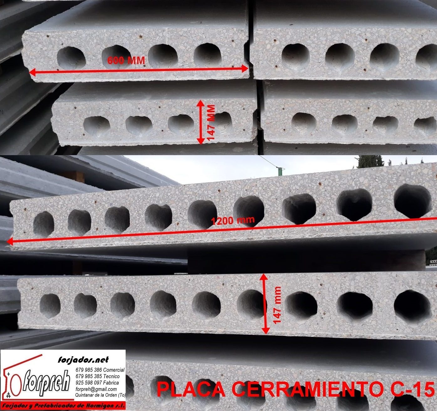 Nuestros cerramientos con placas alveolares pretensadas son la mejor opción para su proyecto. Nos adaptamos a la morfología de su obra, dimensionamos el canto de nuestro producto en función al largo que tenga su estructura. Tenemos de cantos de placa C-15 y C-20. Y los alturas que se fabrican son en 120 cm de alto por el largo
