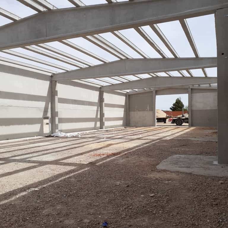 Fabricamos y montamos naves prefabricadas de hormigoón de pequeña y mediana envergadura. Contamos con vigas delta armadas de hasta 20 mts, pilares de hasta 12 mts de largo con posibilidad de ménsulas, vigas jacena armadas y correas tubulares pretensadas de canto 25.